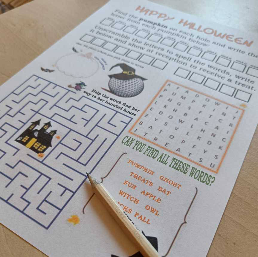 - inc. find the pumpkin letters on each hole and